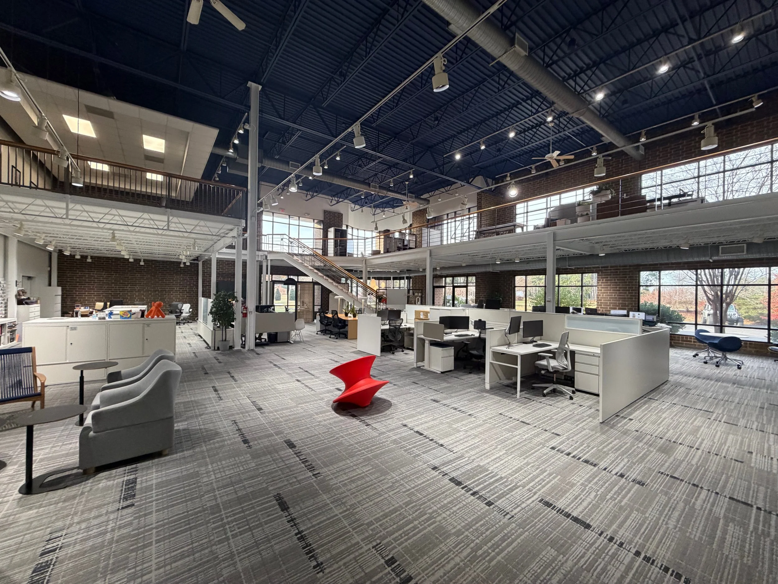 ±36,217 SF two-story flex/office building on ±2.58 acres, strategically located at 8007 National Service Road in Colfax, NC, just minutes from PTI Airport and centrally positioned between Greensboro, High Point, and Winston-Salem. The property features a mix of open creative office, mezzanine, and warehouse space under Conditional Use Light Industrial (CU-LI) zoning, accommodating a wide range of office, showroom, and light industrial users.